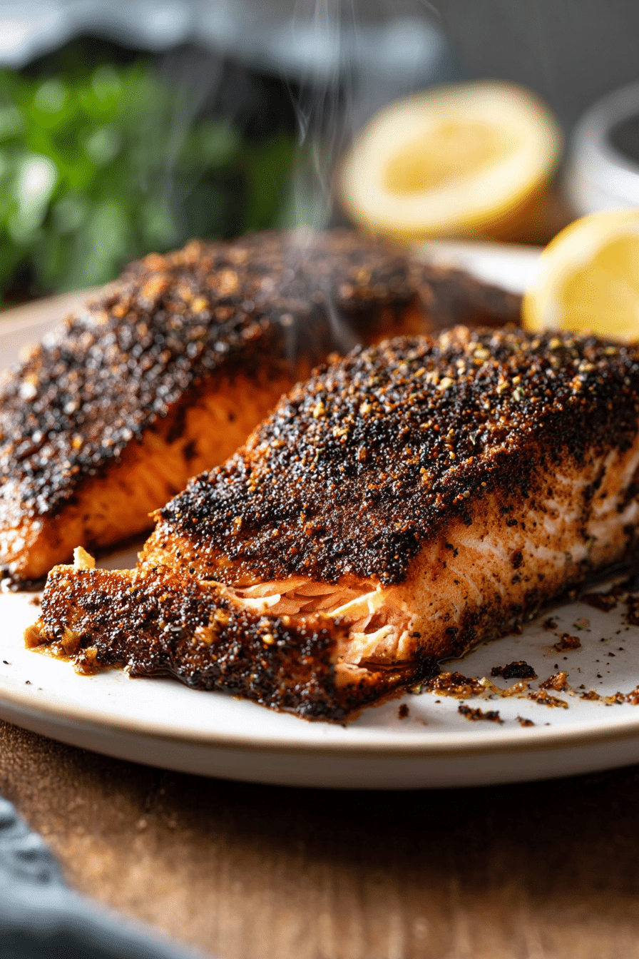 What makes this method reliable is patting the salmon dry first and coating it evenly with oil before adding seasoning. This helps the blackening spices adhere and form that signature crust. Cooking skin-side down also protects the delicate flesh from overcooking. The result is flaky salmon with a smoky, slightly spicy crust, without filling the kitchen with smoke.