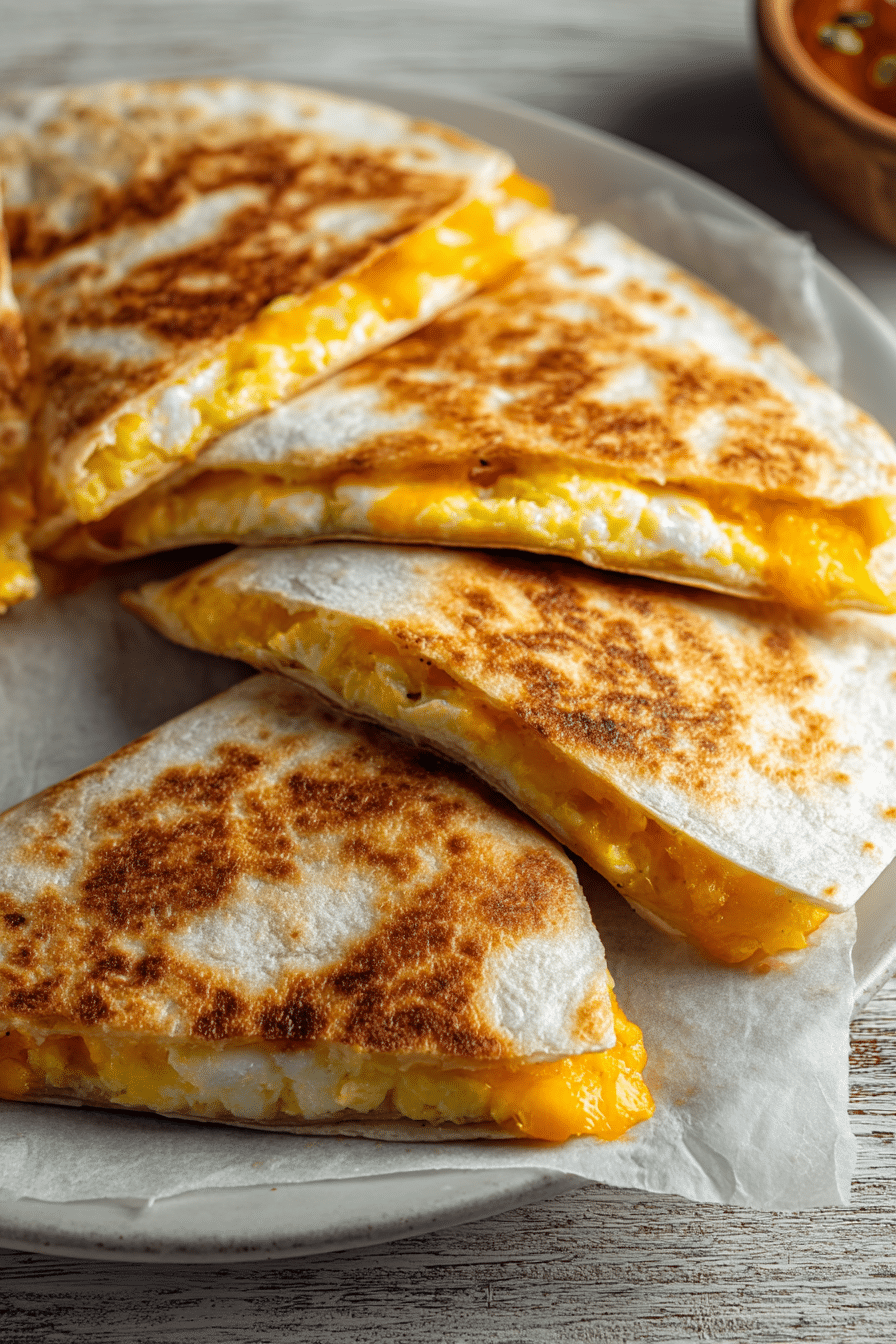- Remove when tortillas are evenly browned and cheese is fully melted. Internal egg temperature should reach 160°F (71°C) for food safety.