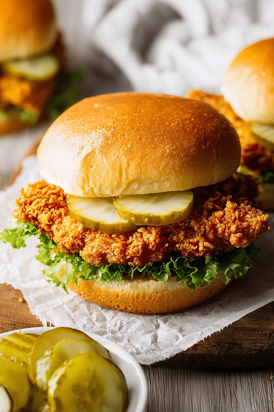 What makes this Air Fryer Chicken Sandwich work so well is the balance of heat and airflow. Cooking at 380°F (193°C) gives the coating time to crisp before the inside overcooks. I also use a simple flour-cornstarch blend, which creates that signature crunch you’d expect from a restaurant sandwich, without deep frying.