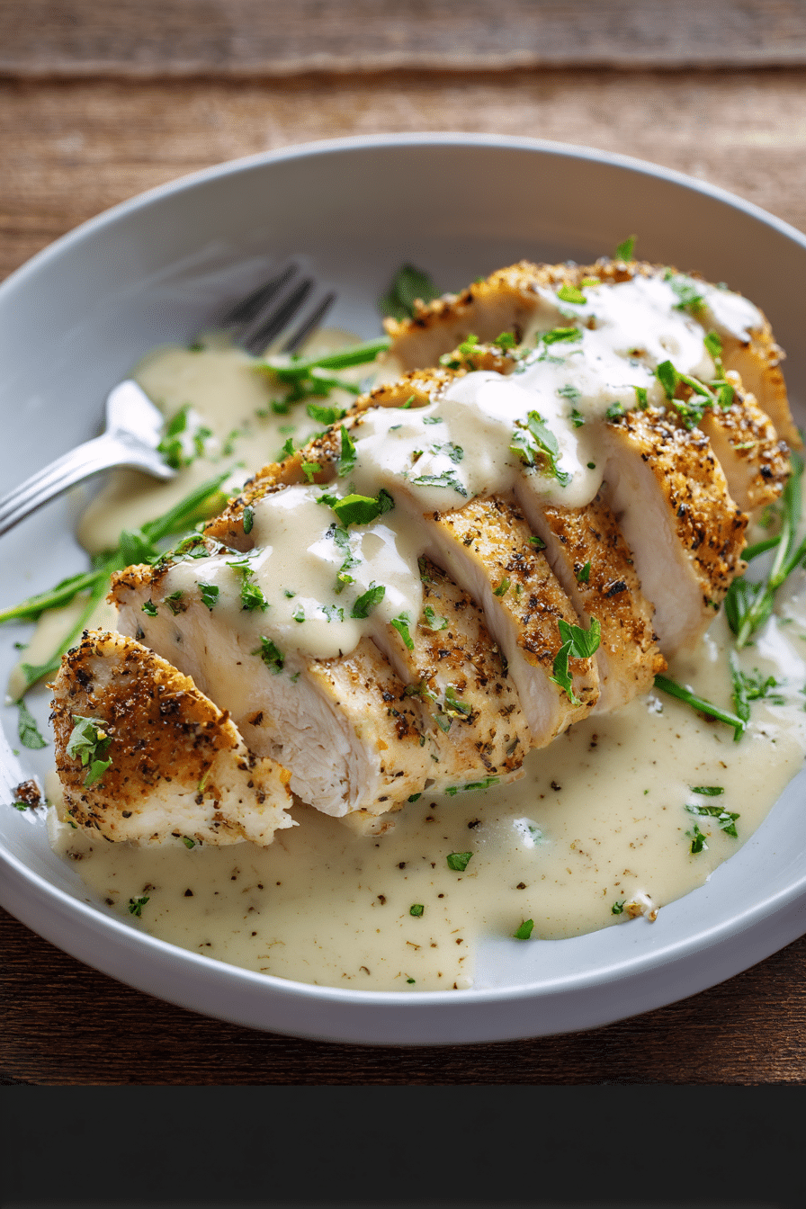 Then, preparing the cream sauce separately prevents curdling and allows better control over thickness. This method gives you tender chicken with a velvety garlic parmesan sauce spooned right on top. It’s faster than a crockpot version and doesn’t sacrifice that comforting, creamy texture.