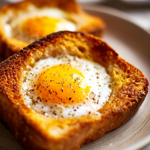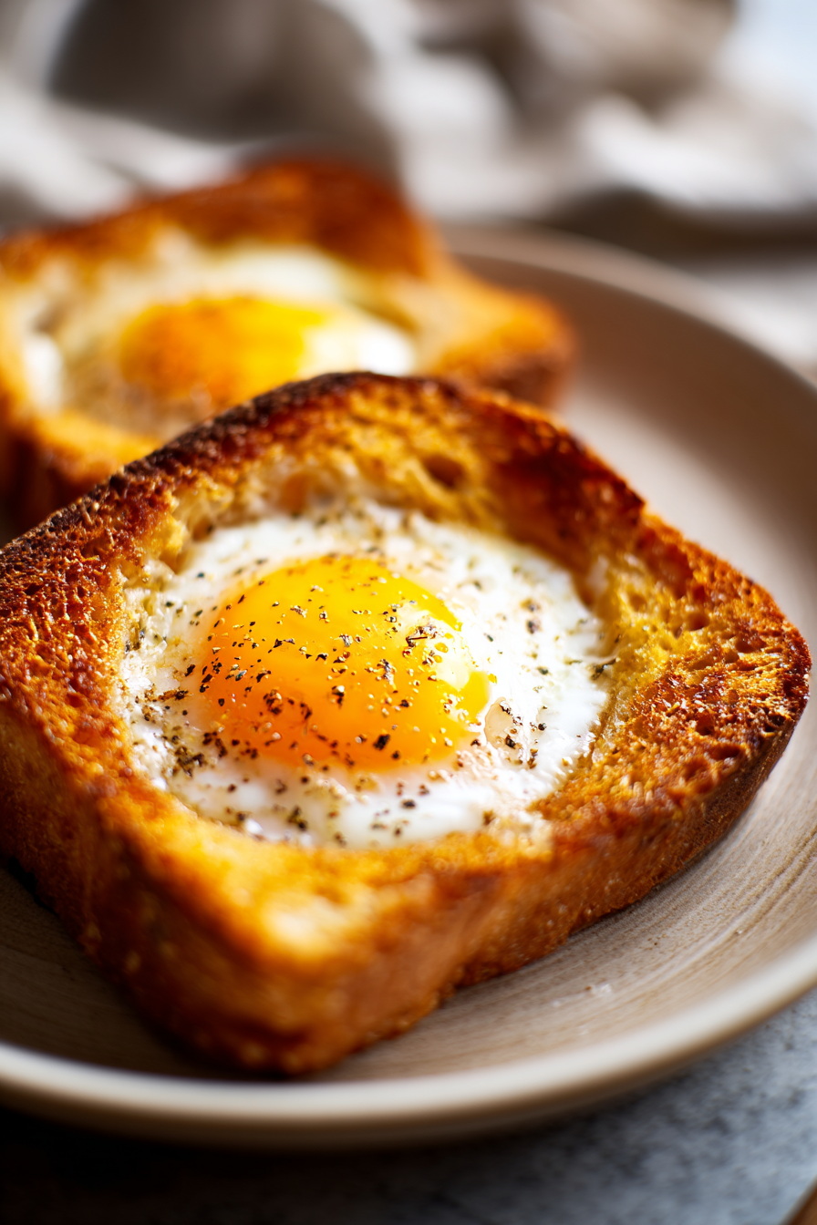 - Use thicker bread slices to hold the egg better without tearing.