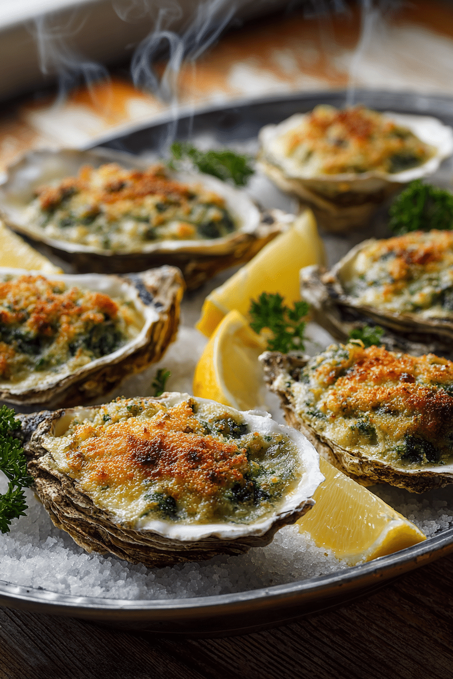 What makes this method reliable is draining the oysters well and using a thicker spinach mixture so the topping doesn’t become watery. Cooking on a stable bed of rock salt or crumpled foil keeps shells steady. The result is plump oysters with a creamy, garlicky spinach topping and lightly golden crust.