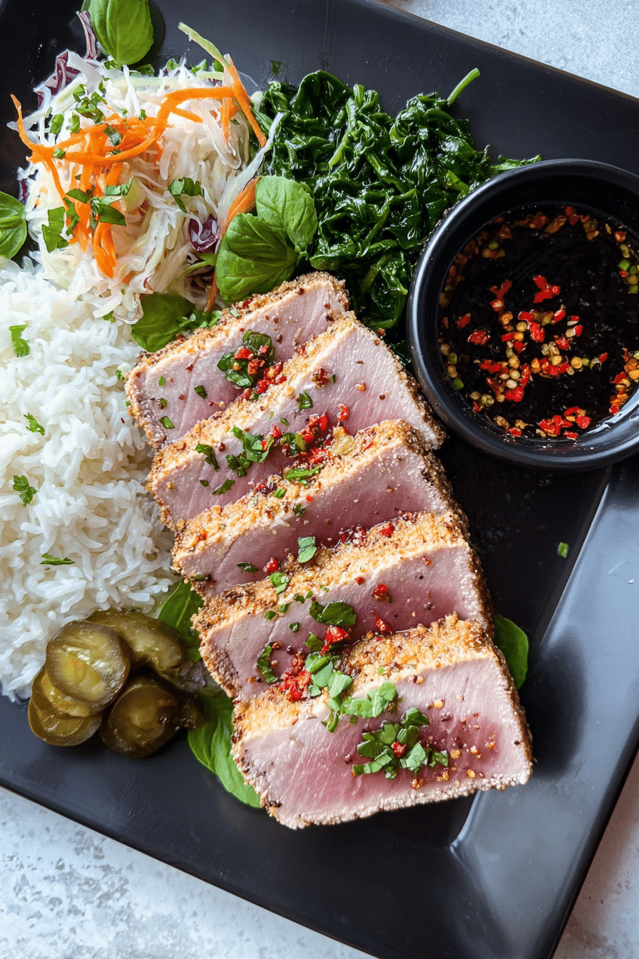 - 2 sashimi-grade tuna steaks (6–8 oz each, 1-inch thick)