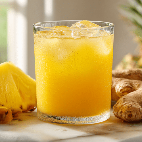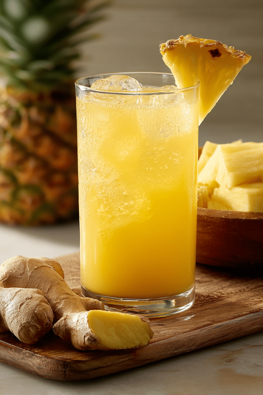 A tropical detox juice combining pineapple, fresh ginger, and lemon for a refreshing drink that supports digestion and hydration.