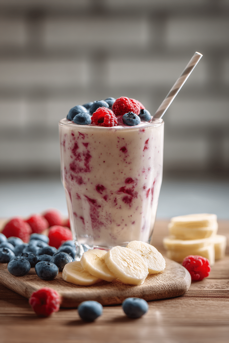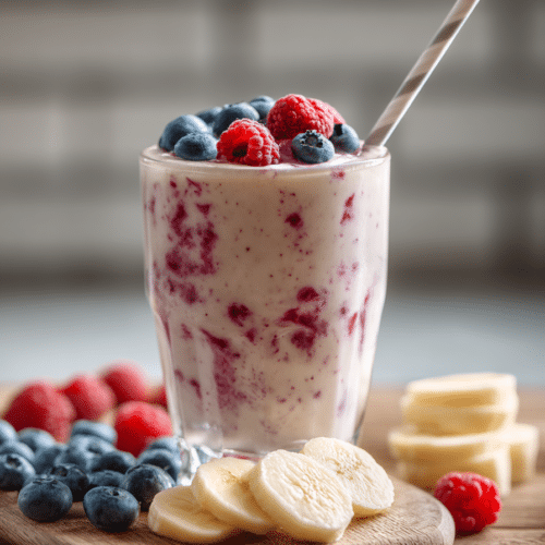 A creamy high-protein smoothie made with Greek yogurt and berries to support satiety and balanced energy. Ideal as a healthy breakfast or post-workout drink.