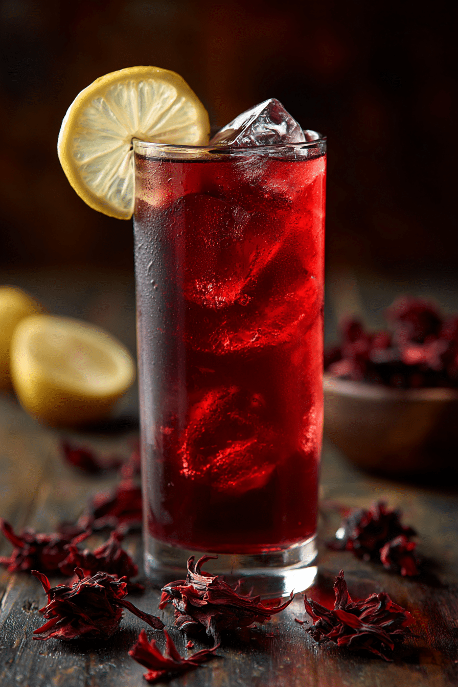 A bright, tart herbal iced tea made with dried hibiscus flowers and lemon. Refreshing, naturally caffeine-free, and perfect for summer hydration