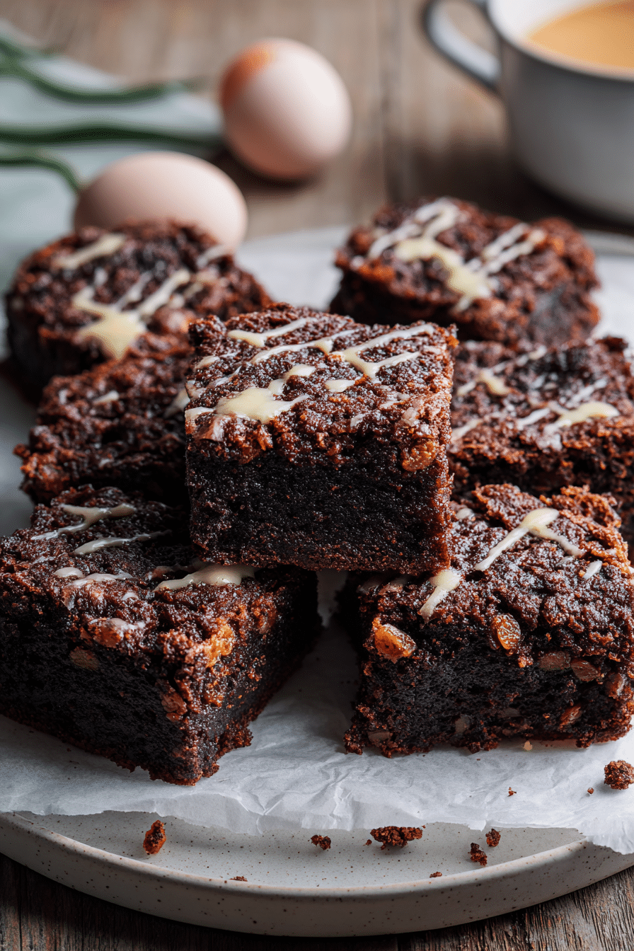 The key is lightly soaking the chopped hot cross buns in milk before folding them into the batter. This prevents dry pockets and blends the cinnamon-raisin flavor into the chocolate base. The result is a rich, gooey brownie with subtle spiced sweetness, perfect for using up Easter leftovers.