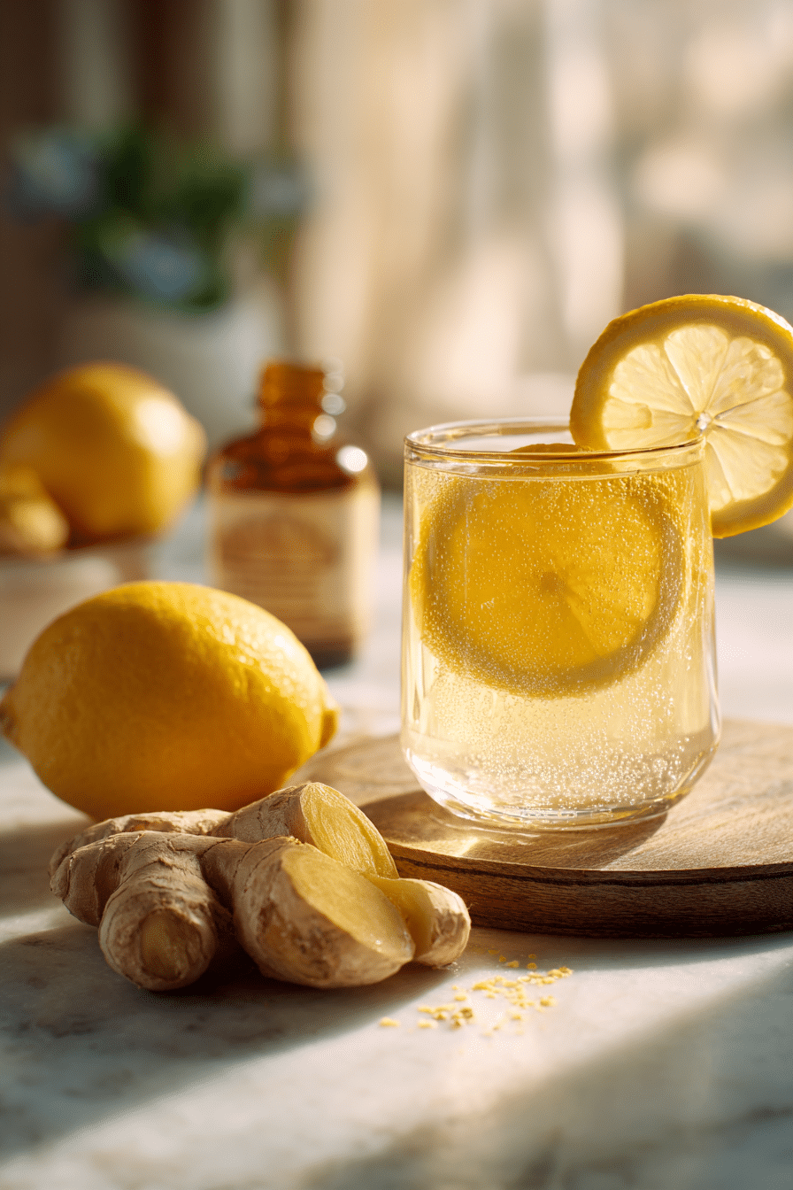A refreshing lemon, ginger, and apple cider vinegar drink designed to support hydration, digestion, and morning energy.
