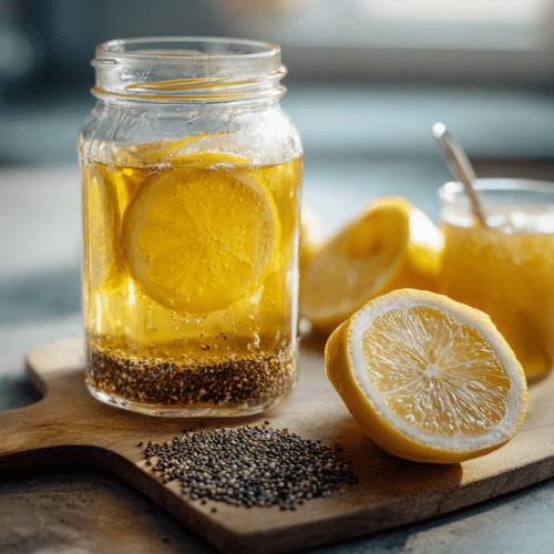 Overnight fat burning drink (chia + ACV) is a simple wellness beverage made by soaking chia seeds in water with apple cider vinegar and lemon. This easy drink is prepared in minutes and left overnight so the chia seeds form a light gel texture. It’s refreshing, hydrating, and naturally rich in fiber. The combination of chia seeds and apple cider vinegar creates a balanced drink that supports fullness and digestion.