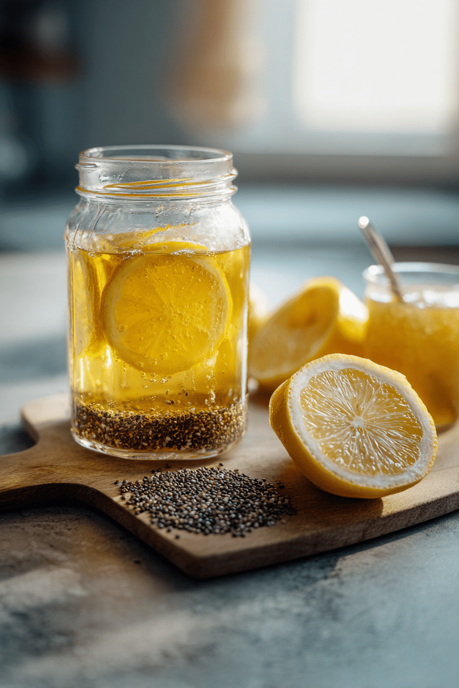 A fiber-rich overnight wellness drink made with chia seeds, apple cider vinegar, and lemon. Designed to support hydration, digestion, and morning metabolism routines.