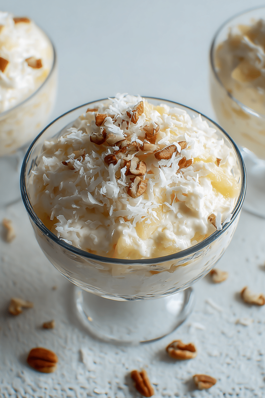 Traditional pineapple fluff recipes use full-fat whipped topping, pudding mix, and sometimes marshmallows. That combination adds up quickly in points. I discovered that swapping in nonfat Greek yogurt and light whipped topping keeps the texture airy while cutting calories.